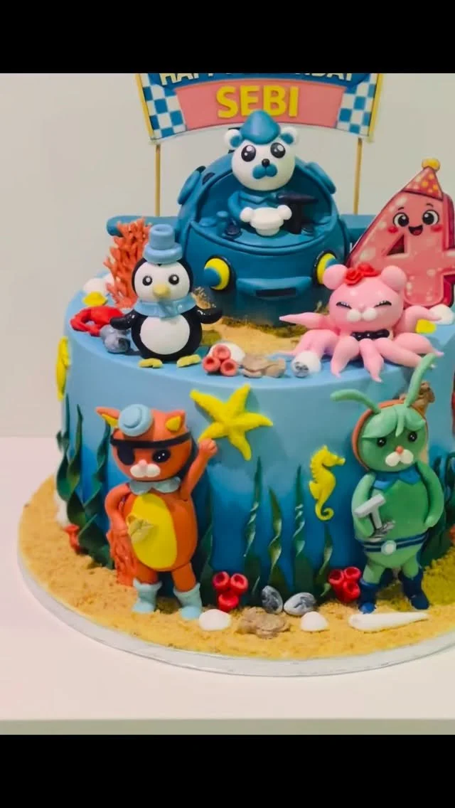 Our custom cakes can be sculpted and carefully crafted into shapes (like shoes, pillows, animals or even people), covered in buttercream and fondant and then painted or decorated with edible food colours and decorations.